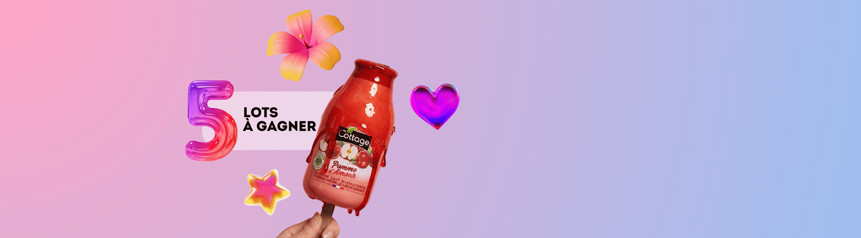 Partagez votre avis sur un produit Cottage, puis remplissez le formulaire pour tenter de gagner un joli lot à la fin du mois. Cliquez sur “Jouer” pour participer !